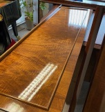 I also perform exterior restorations, repainting and refinishing of both antique and modern pianos. I am using dyes, wax, oil, schelack, varnish, or lacquer in my work. When necessary, I use polyester or epoxy. Occasionally, a little red wine. On that day, I didn't drive.